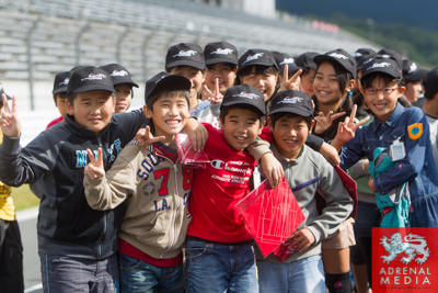 We have a full brief, first up for me is to photograph the Fuji school kids from a local school with the Audi safety car on the main straight of the track. Not as straight forward as you would expect when you need to try to avoid certain advertising boards. Lots of fun the kids were great and very enthusiastic.