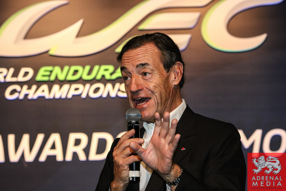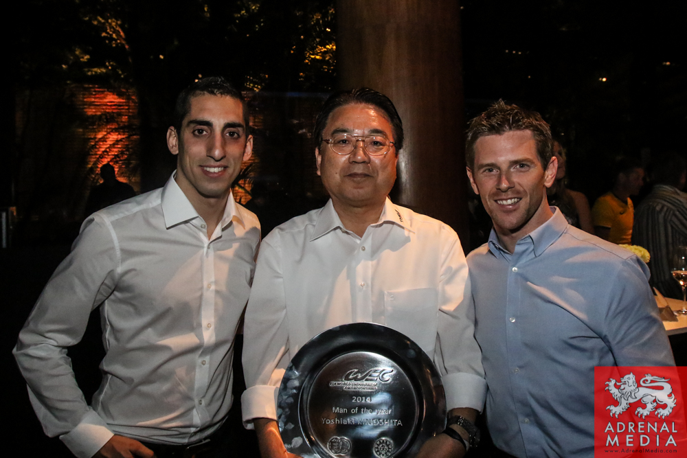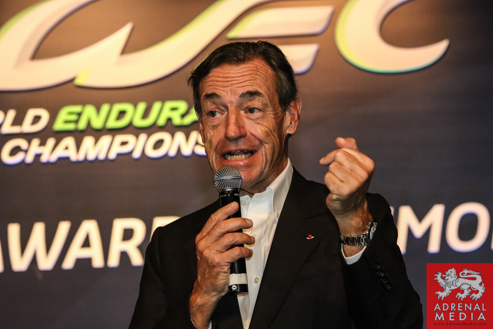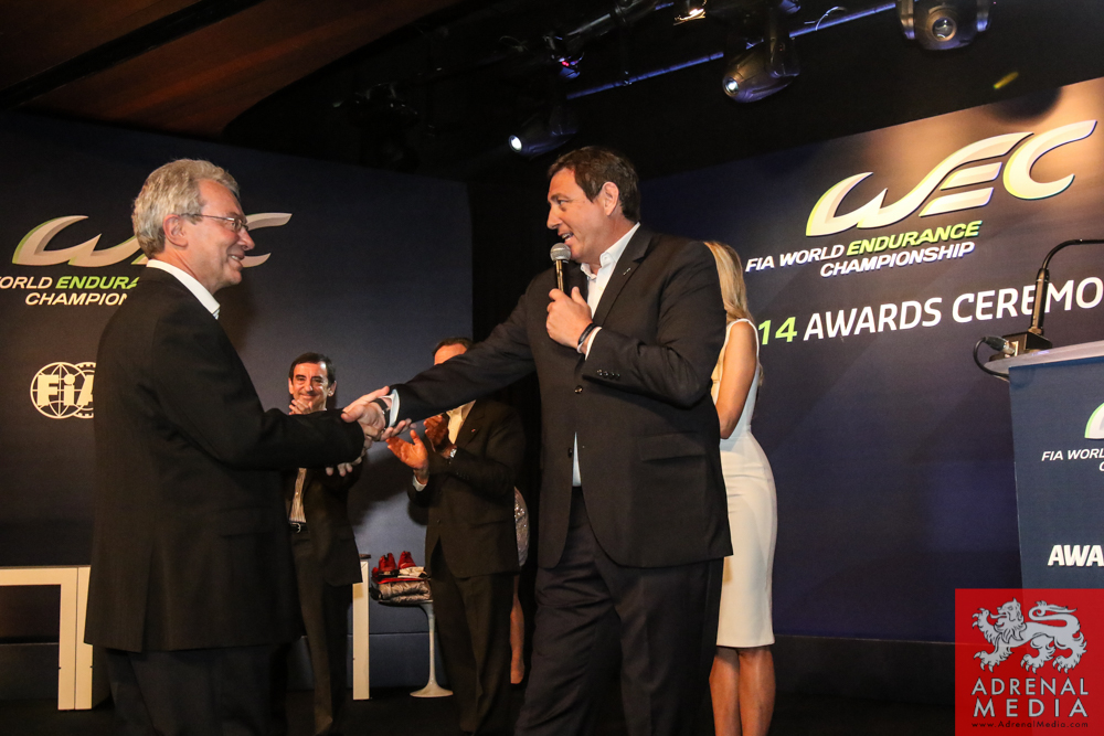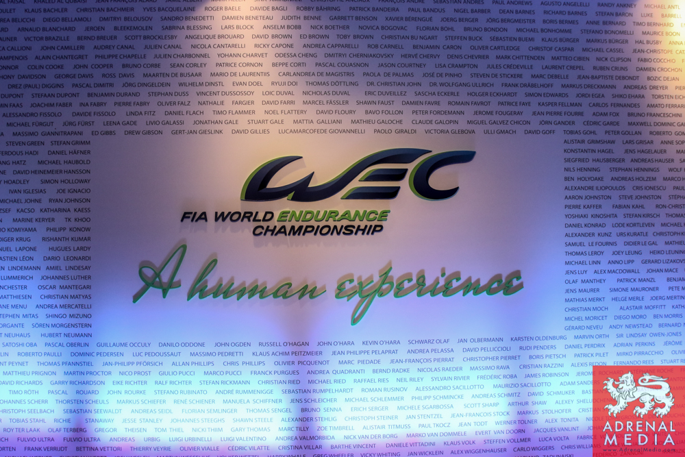 Tom Kristensen receives a present signed by the drivers and official of the FIA WEC